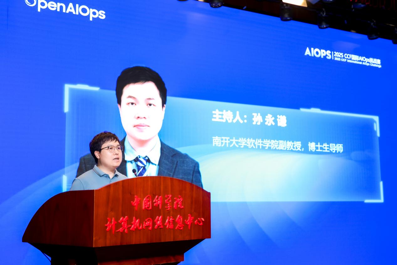 副教授孙永谦主持。首先,中国科学院计算机网络信息中心副研究员聂晓辉对本届挑战赛的竞赛背景、赛题、赛制进行了详细介绍。两大核心赛题均围绕当前智能运维领域的真实问题设计,具有较高的技术挑战性与实践价值。