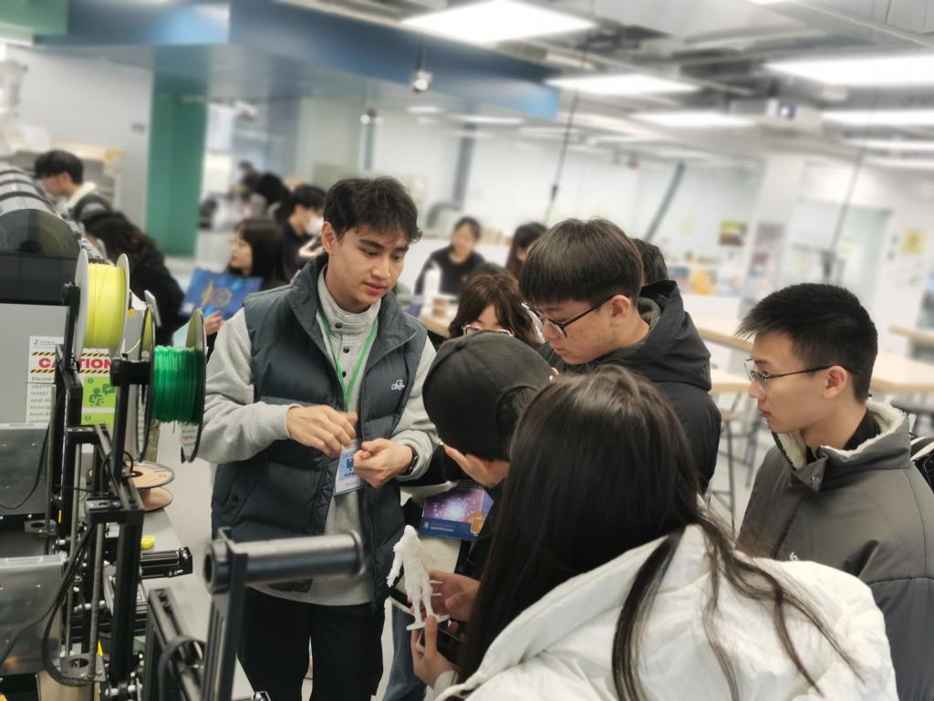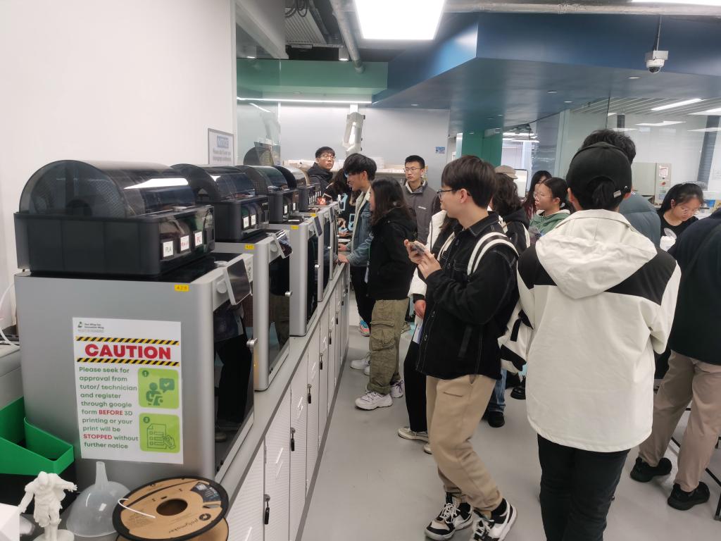 随后,在工作人员陪同下,访学团队参观了香港大学谭荣芬创科翼(Tam Wing Fan Innovation Wing)。同学们参观了可供港大在校生日常开展实验创新活动的场所和仪器设备,体验了学生的科技创新作品和研究发明成果,感受到了浓厚的创新氛围和强大的创造力。