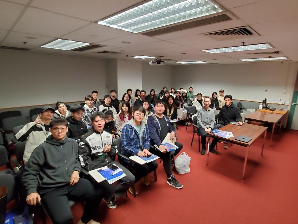 当天上午,访学团队来到香港大学周亦卿楼,与计算机系黄志毅、赵恒爽、吴陈沭三位教授先后开展学习交流。黄志毅教授对香港大学和计算机系的基本情况进行详细介绍,并就招生政策和学生培养方面内容进行细致讲解。赵恒爽、吴陈沭两位教授介绍了研究领域的最新成果,并与同学们深入交流了其对计算机和软件行业未来发展前景的展望与思考。最后,三位教授还就同学们提出的学术及应用性问题进行解答指导。