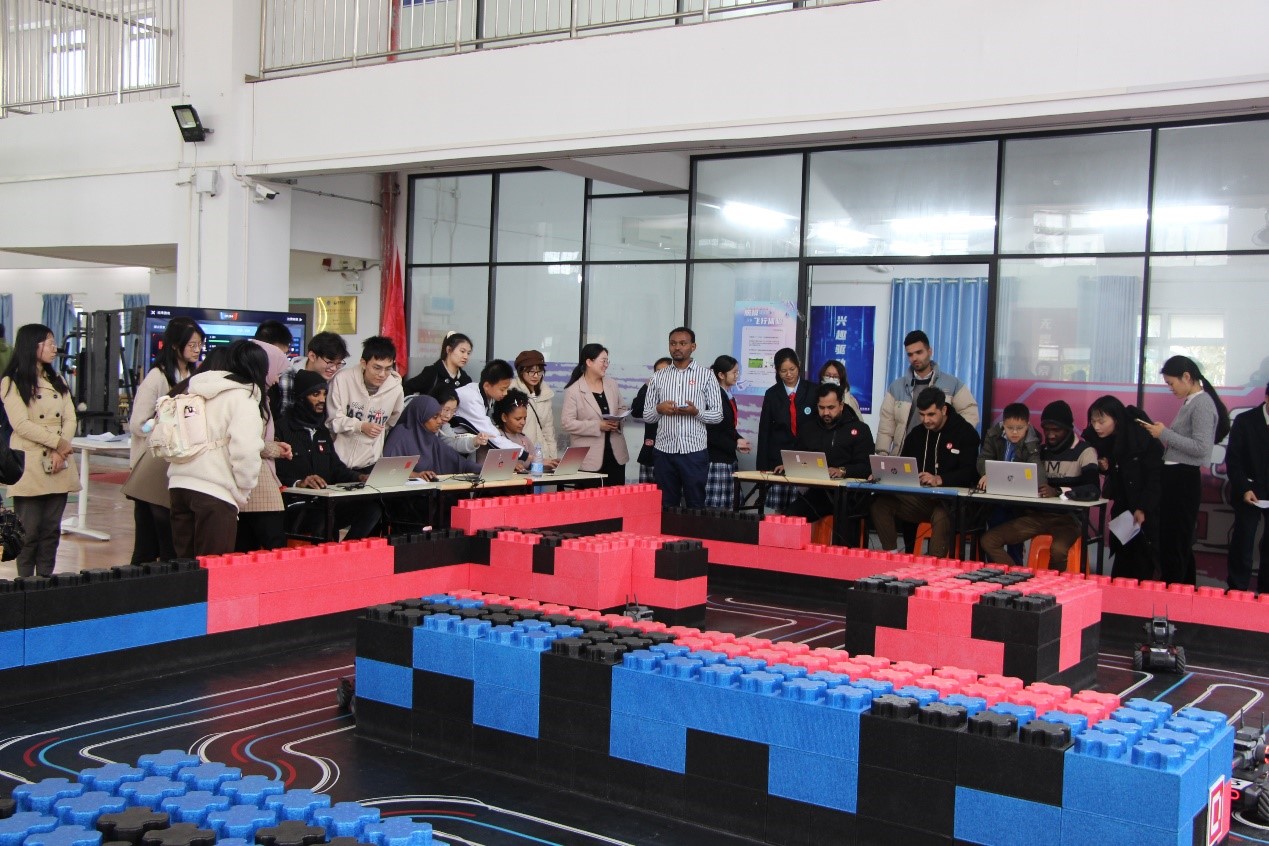 深圳是中国无人机之都,这里汇聚了1300多家无人机开发制造企业,举办过世界无人机大会。留学生考察的第一站,就选择位于宝安区的黄麻布学校。在观赏了黄麻布中学生操作的无人机表演后,留学生分组进行机甲大师征服赛、无人机足球赛、无人机穿越赛和工程机器人挑战赛等系列赛事,通过实际操作,留学生们体验到无人机的精妙绝伦,无不叹为观止。