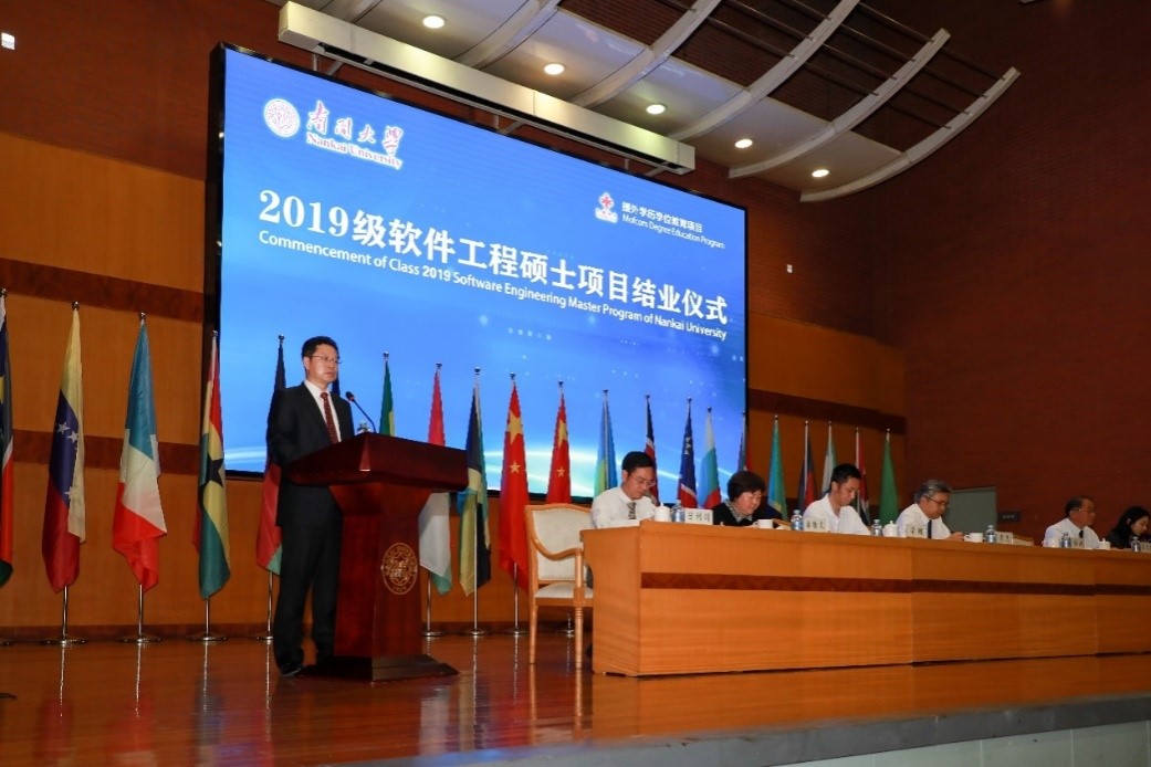 张玉志院长在致辞中对2019级援外毕业生表示祝贺,因新冠疫情导致的各种变故,虽有遗憾,但整体圆满顺利。严格的管控措施,保障了学生们的安全。软件工程是发展非常迅速的行业和学科,希望留学生们继续秉承南开校训,为各自的国家和民族多做贡献。保持联络、巩固友谊,多与中国合作发展。