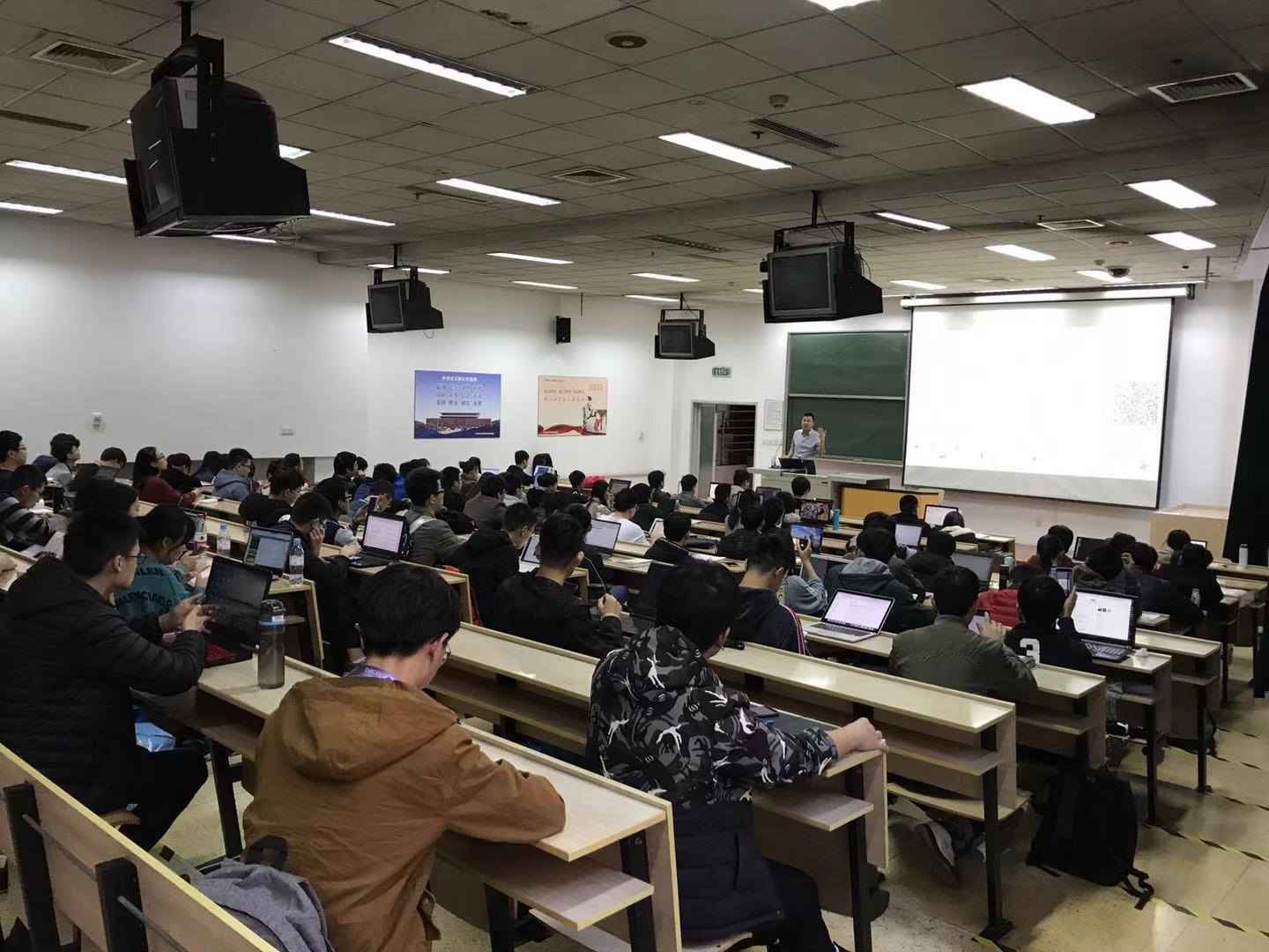 。来自IBM公司技术一线的王震工程师亲临讲座现场,为学生进行了精彩报告“IBM Hyperledger从零到上手”,近百名学生参加了讲座。讲座内容包含五个主要部分:区块链相关背景知识介绍、Hyperledger介绍、使用Hyperledger的简单例子、基于区块链的系统架构、 粮食行业的真实案例介绍。
