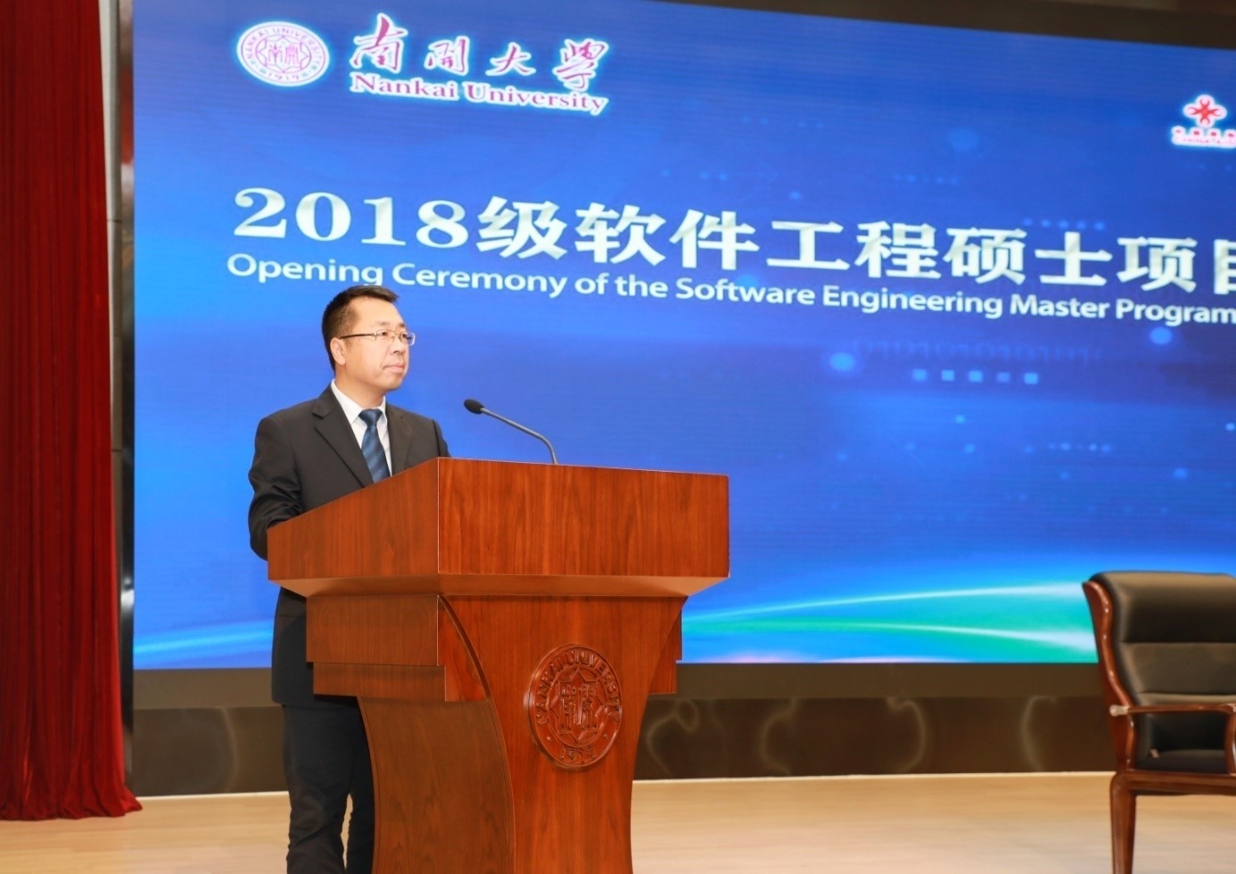 于海校长助理在致辞中对各位学员成为南开人表示热烈欢迎,并介绍了南开的历史、现状、文化传统和国际交流等方面的情况。于海说,学校高度重视本次援外硕士项目,希望各位学员不仅在南开学到技术、知识和经验,也能收获中国人民和南开师生的友好感情,学成回国后成为所在国互联网和软件工程领域的生力军,更成为推动国际间友好交流的使者,为各国青年来华学习和交流搭建起友谊的桥梁。