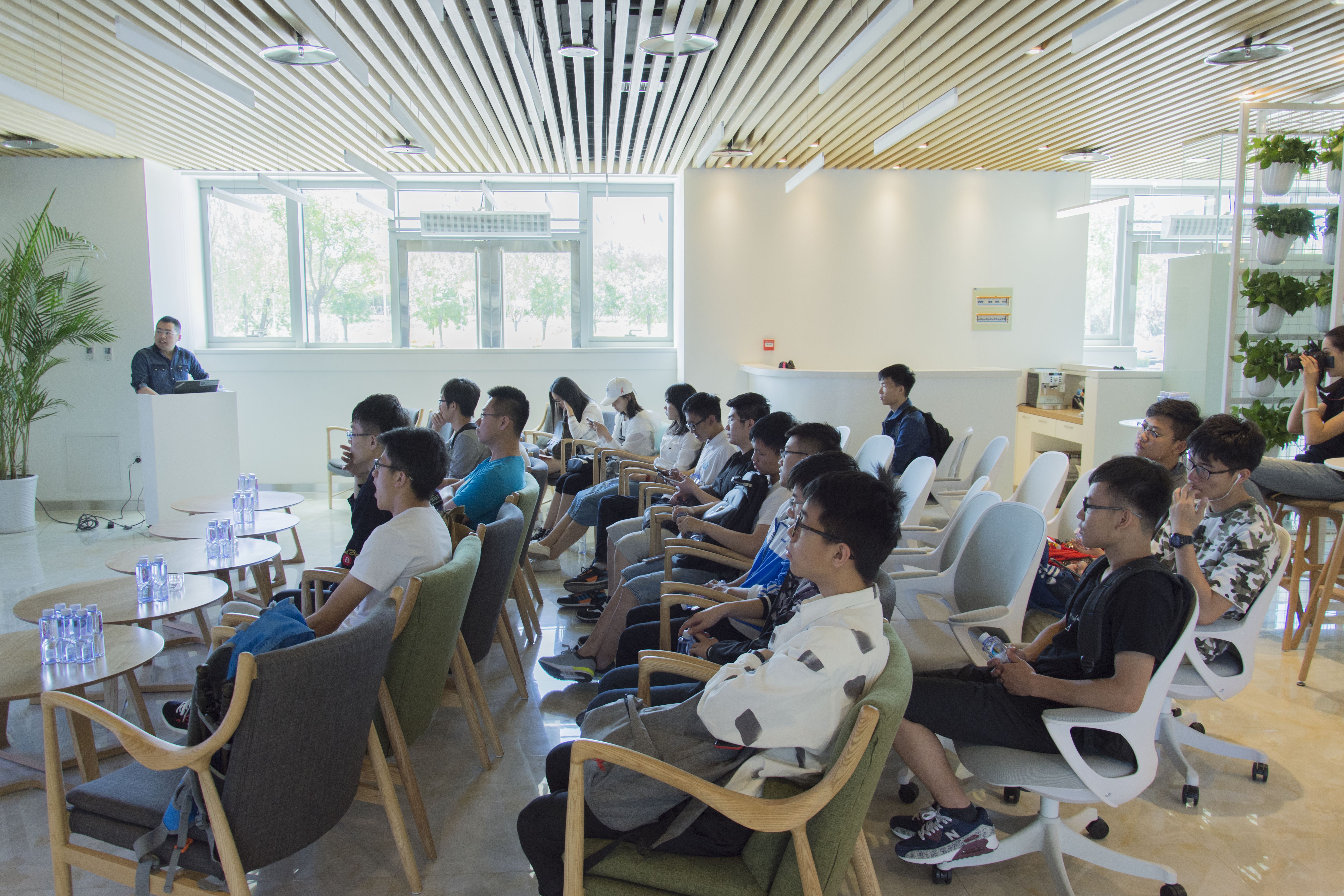 在银河麒麟公司,学生参观了“优麒麟”项目,项目团队负责人向大家讲解开源项目的含义,并展示优麒麟的发展历程以及优麒麟团队的软件研发成果。