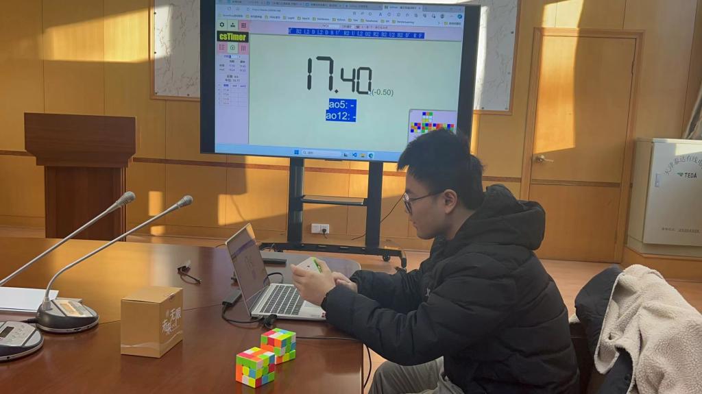 在泰达校区举办了魔方交流赛。这不仅是一场充满创意与技艺的比赛,魔方作为一项思维训练和逻辑推理的良好工具,更是对数学思维、逻辑思维的锻炼。