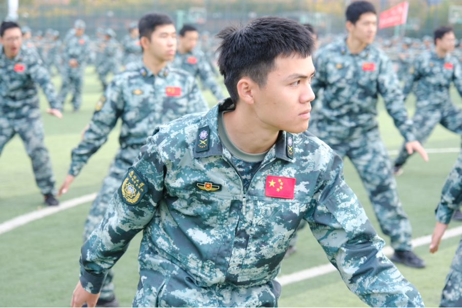持续一个十月的军训进入了尾声,落日的余晖照耀着二连所有参训学生经过30天的训练而变得更加坚毅的脸,在军训中练技巧、练体能、练精神。