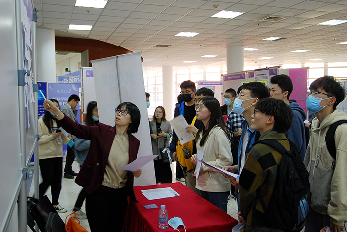 开幕仪式后,华为技术有限公司、康希诺生物股份有限公司、北京搜狐新时代信息技术有限公司和中电(海南)联合创新研究院四家企业和科研机构作为代表,开展现场宣讲会,一一展示企业情况、发展前景、招聘岗位、待遇福利等信息,并表示期待南开学子的加入,与企业一同成长。