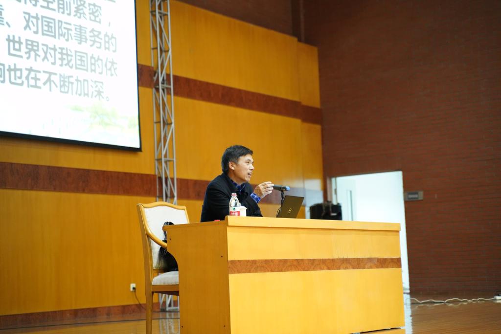 最后,钟龙彪结合中美两国的国力对比、战略态势以及合作基础等方面深入分析了近年来中美关系的变化,提出任何挑战都挡不住中国前进的步伐,中国有信心迎难而上,化危为机,开拓一片新天地,他激励同学们要努力学习知识,担当时代使命,保持定力,增强耐力,为决胜全面建成小康社会、夺取新时代中国特色社会主义伟大胜利、实现中华民族伟大复兴的中国梦提供坚强保障。