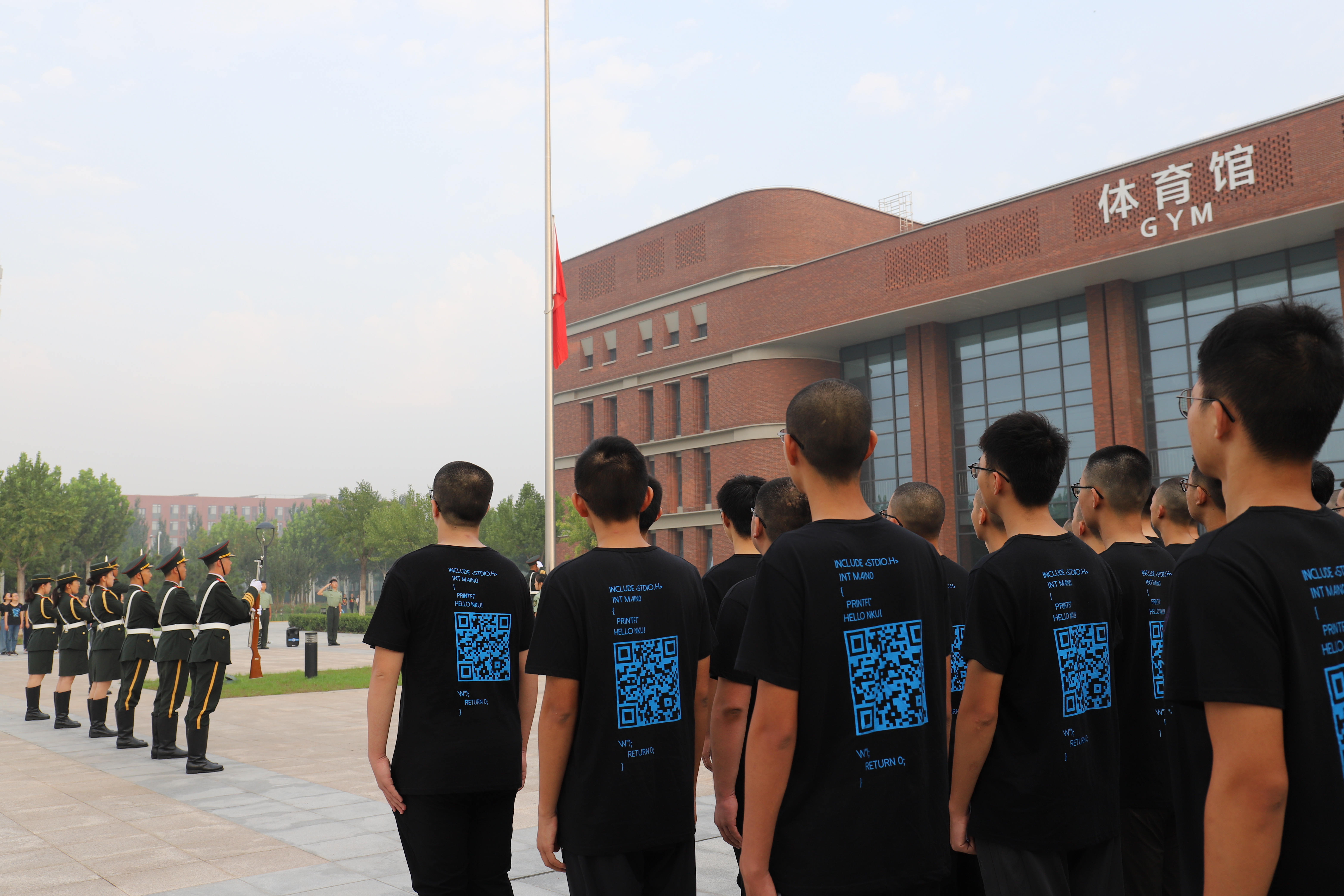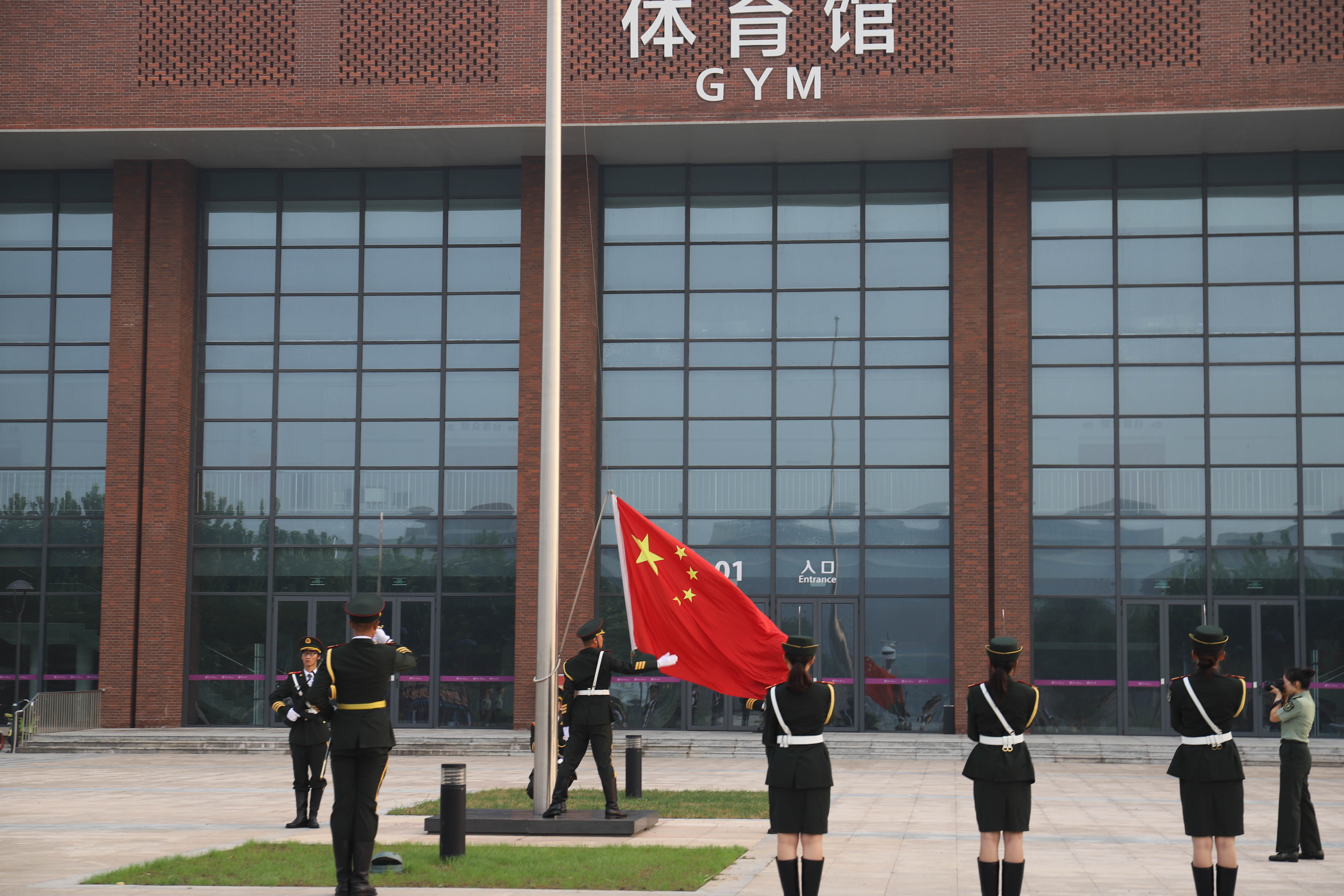 辅导员陈镜宇老师已经整齐地集合在津南校区体育馆前的五星红旗前,由六色网